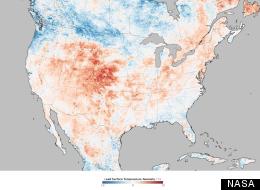 Intensity of the heat wave in the western United States can be seen in this NASA map of land surface anomalies. (Photo via NASA)
